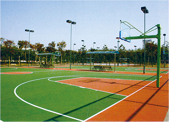 高于一般硬地丙烯酸,為高檔籃網球場材料。